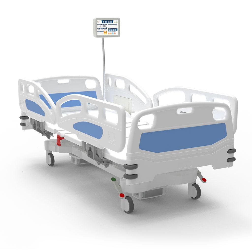 • Vertical ABS retractable side rails with two sections per side (half-sections) for total patient restraint with vertical lowering system and power-assisted lowering movement – Accessory  code AC71.